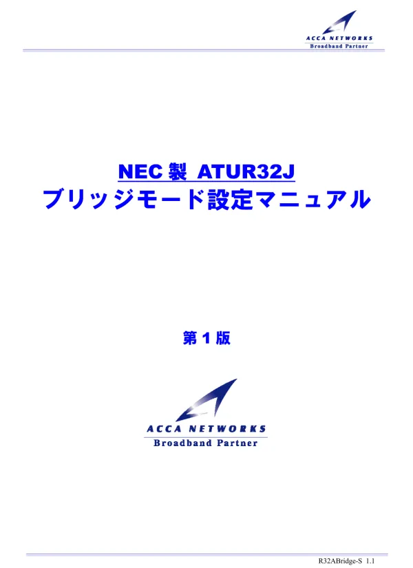 本マニュアルは、NEC製ATUR32J ADSLモデムのルータモードとブリッジモードの設定変更方法を説明します。ルータモードでは、複数のPCを接続できますが、プライベートIPアドレスが割り当てられます。一方、ブリッジモードでは、グローバルIPアドレスがPCに直接割り当てられるため、セキュリティ対策に注意が必要です。Windows XPとMac OS X以外のOSでは、PPPoEクライアントソフトのインストールが必要となる場合があります。ブリッジモードを使用する場合は、IPアドレスの手動設定が必須です。IPアドレス自動取得の設定も、OS別に解説しています。